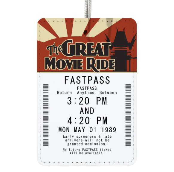 Travel back to a simpler age of Disney history, when paper was worth its weight in gold, yet distributed freely at convenient kiosks. FASTPASS revolutionized how we all experienced Disney parks from the 1990's to the 2020's. Carry those memories into the age of Lightning Lane with our FASTPASS inspired luggage tags.